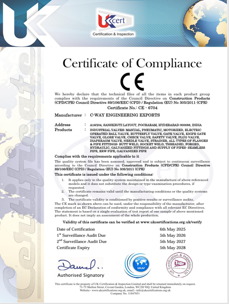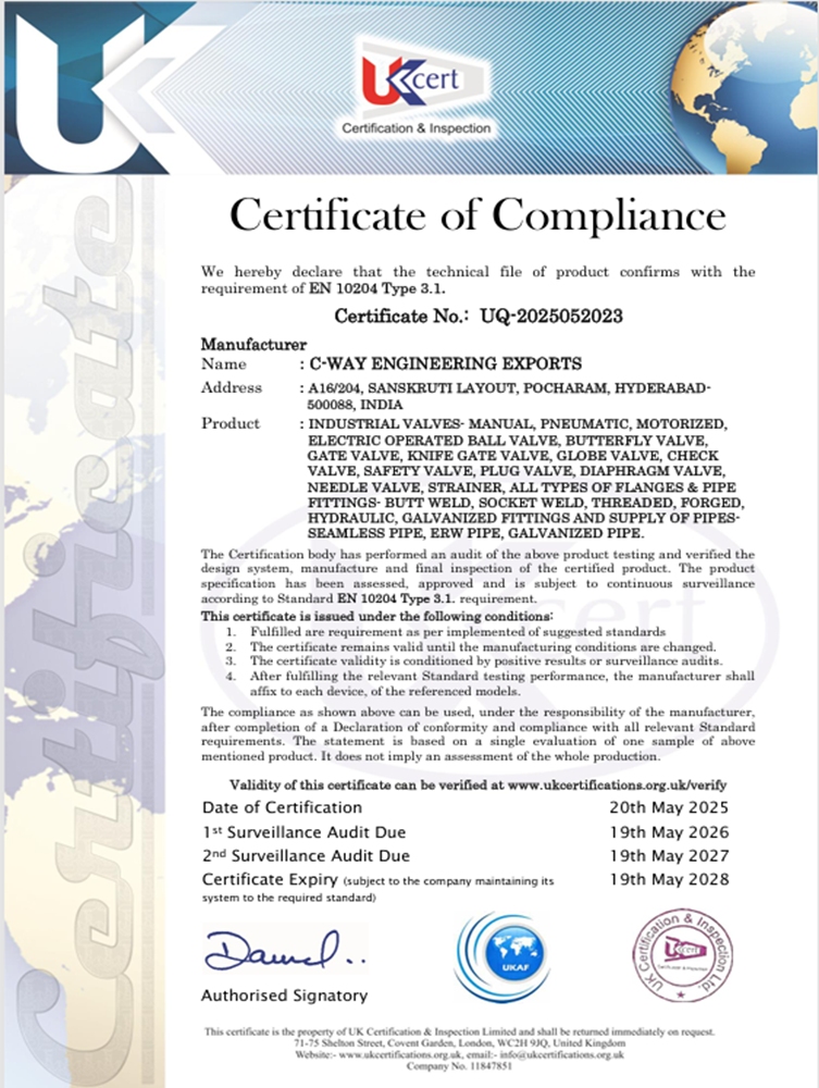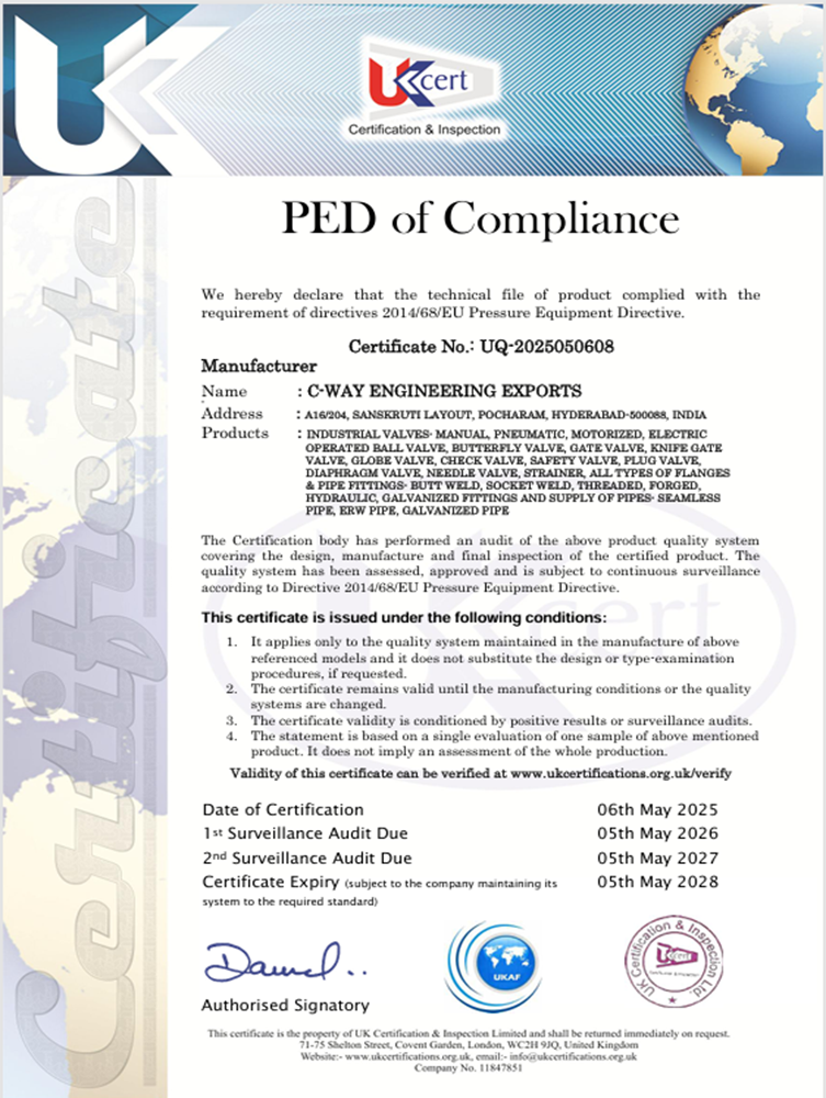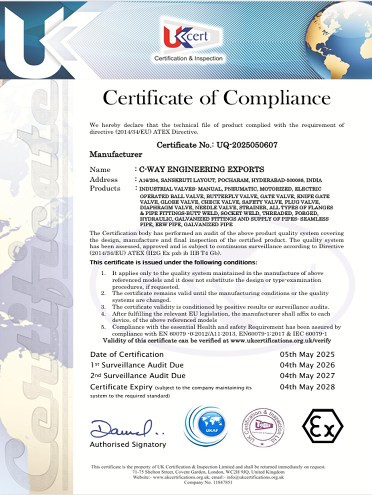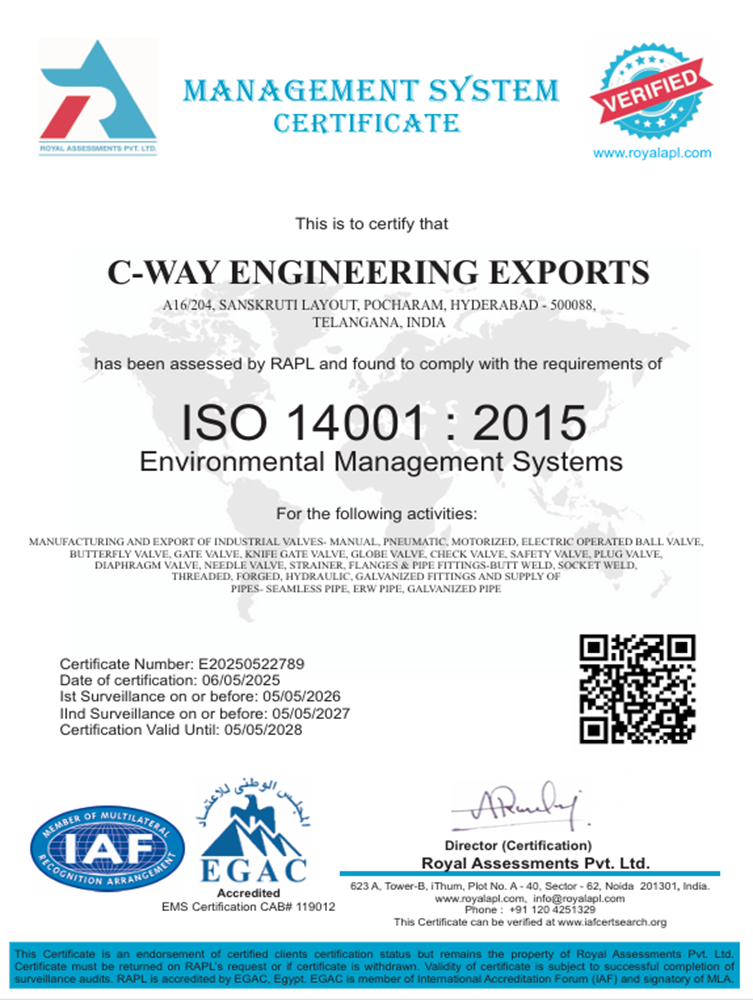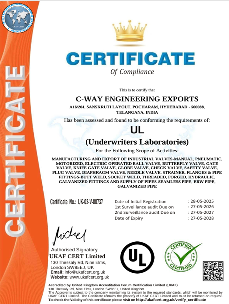 “C-Way Engineering Exports”, an ISO 9001-2015 certified company dedicated to manufacturing cutting-edge engineered flow-control and piping solutions. As a prominent industrial valve company, our mission is clear: to enhance safety, reliability, and performance in flow-control and piping systems across a multitude of industries, including oil & gas, chemical, food & beverage, water, and more.