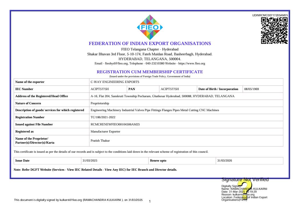 With 27 years of dedication and expertise in the field, ‘C-Way Engineering Exports’ is a trusted name in fluid control solutions. We believe in fostering strong relationships with our clients by listening to their needs, providing expert advice, and delivering solutions that exceed expectations.